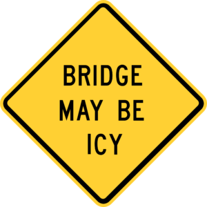 Elevated roadways, such as bridges, ramps, overpasses, and shaded areas, are the first to freeze in cold weather. Exercise caution, take it slow, and when possible, use an alternate route to avoid potentially hazardous roads.